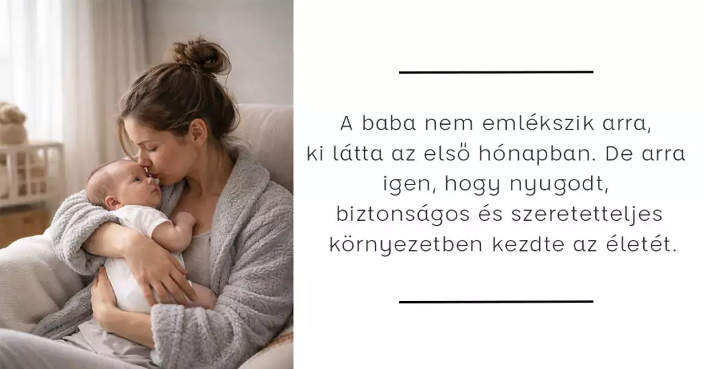 És a legfontosabb: a baba nem emlékszik arra, ki látta az első hónapban. De arra igen, hogy nyugodt, biztonságos és szeretetteljes környezetben kezdte az életét.